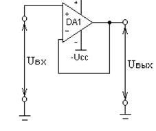 В качестве повторителя, который соответствует всем перечисленным требованиям, подходит ОУ К153УД1Б включенный по схеме рис. 4.