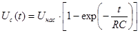При включении питания напряжение на выходе усилителя вследствие неидеальной балансировки отличается от нуля. Это напряжение (например положительное) с выхода усилителя через цепь положительной обратной связи (ПОС), образованной резисторами R1 и R2 подается на неинвертирующий вход ОУ, усиливается им, снова подается на вход и т.д., пока усилитель не переключится в состояние насыщения и напряжение на его выходе не станет максимально возможным. К инвертирующему входу ОУ подключен конденсатор С , напряжение на котором в начальный момент равно нулю. После переключения конденсатор начинает заряжаться через сопротивление R , подключенное к выходу ОУ и напряжение на нем начинает возрастать.