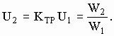 Напряжение U2является напряжением ОС. Оно связано с напряжением первичной обмотки W1коэффициентом трансформации: