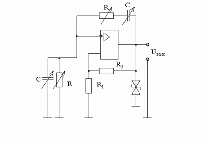 Рис. 3.1 - Принципиальная схема генератора с последовательно-параллельной RC-цепью на ОУ