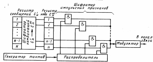 Рис. 5. Функциональная схема шифратора импульсных признаков при параллельной и последовательной передаче элементов сигнала.