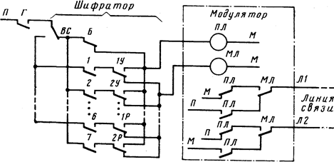 В комбинационных системах рассмотренную совокупность цепей управления модулятором принято называть шифратором.