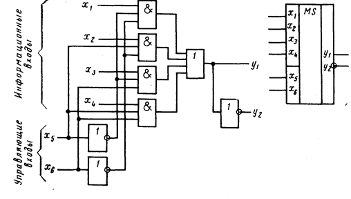 Рис. 7. Функциональная схема и условное обозначение мультиплексора