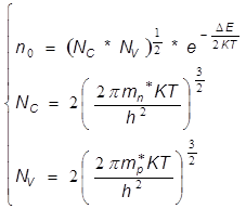 1. Рассчитать температурную зависимость концентрации равновесных носителей заряда в собственном полупроводнике
