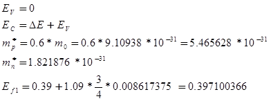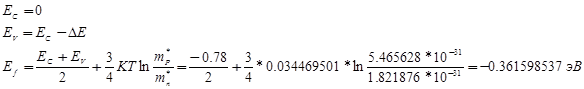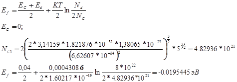 2. Рассчитать температурную зависимость уровня Ферми в собственном полупроводнике