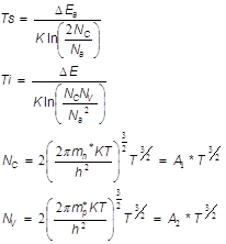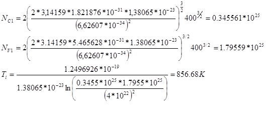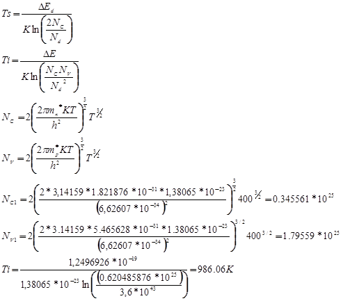 3. Рассчитать температуры ионизации донорной примеси Т s и ионизации основного вещества Т i в полупроводнике n тока методом последовательных приближений. В качестве начальных температур использовать значения Ti =400 К , Ts =50 К