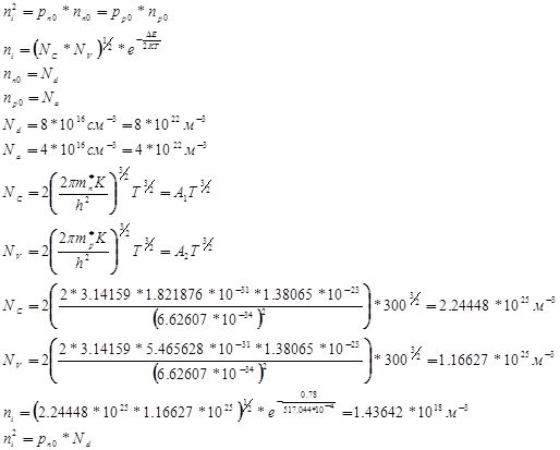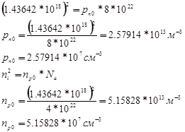 7.Рассчитать равновесную концентрацию основных и неосновных носителей тока в