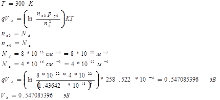 8. Найти высоту потенциального барьера равновесного p - n -перехода и контактную разность потенциалов