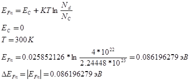 6. Рассчитать критическую концентрацию вырождения донорной примеси