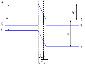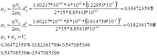 14. Найти падение потенциала в p - n -областях пространственного заряда p - n -перехода