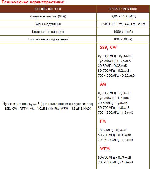 Основные характеристики РПУ ICOM IC PCR -1000