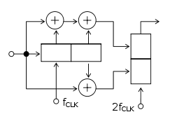 Рис. 3.2 Схема сверточного кодера для кода (7,5).