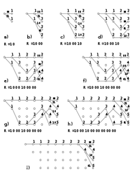 Рассмотрим работу декодера Витерби на примере сверточного кода (7,5). Все решетчатые диаграммы процесса декодирования представлены на рис. 3.4.