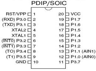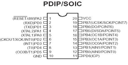 – мікроконтролер AT89C 2051–24PI, ATTINY2313;