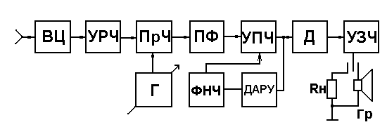 УЗЧ – усилитель колебаний звуковых частот;