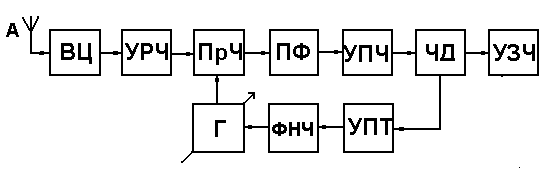 Рисунок 1.3.1, б - Структурная схема супергетеродинного приемника ЧМ сигналов