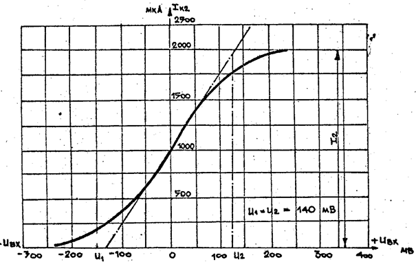 По выходной характеристике, приведенной на рисунке 2.1.2, выбираем рабочую точку А, для которой Iка =2,2 мА и