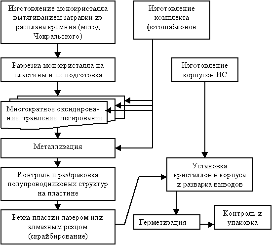 Рис. 1. Укрупненная схема технологического процесса изготовления полупроводниковых (монолитных) ИС.