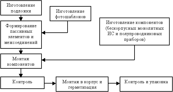 Рис. 2. Укрупненная схема технологического процесса изготовления гибридно-пленочных ИС.