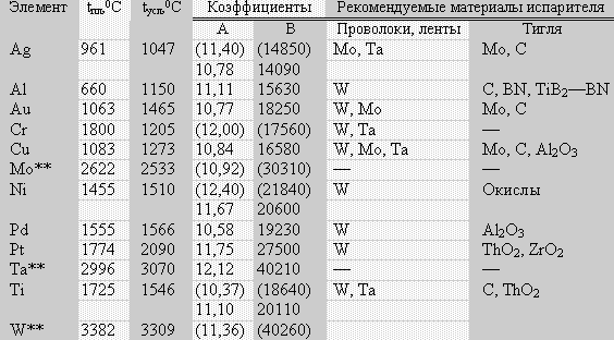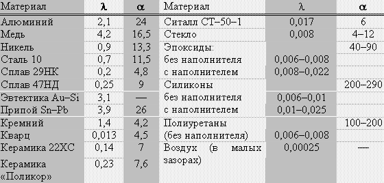 Таблица 12. Значения коэффициента теплопроводности [Вт/(см*К)] и температурного коэффициента расширения [10-6*К-1] некоторых материалов.