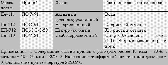 При пайке используют различные припои и флюсы. Критерий их выбора - максимально допустимая температура пайки.