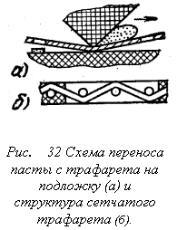 Наиболее точным и производительным способом нанесения присоединительного материала, обладающего свойствами пасты (клей, суспензия стекла, лудящая паста), является сеткографический способ, который, кроме того, позволяет обеспечить достаточно точную дозировку присоединительного материала, а следовательно, высокую воспроизводимость геометрических размеров соединения. Конструкция корпуса микросхемы должна при этом обеспечивать возможность плотного прилегания сетки к основанию.