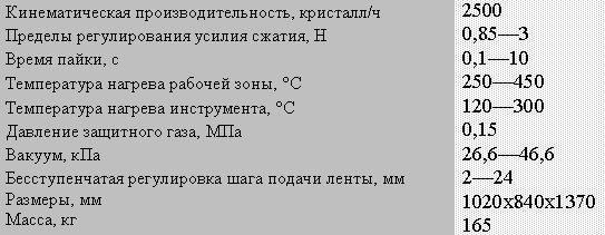 Технические характеристики установки присоединения кристаллов ЭМ-438.