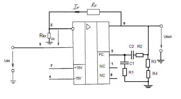 5. Функциональное устройство: неинвертирующий усилитель, Uвых = 10 В, Uвх = 20 мВ,