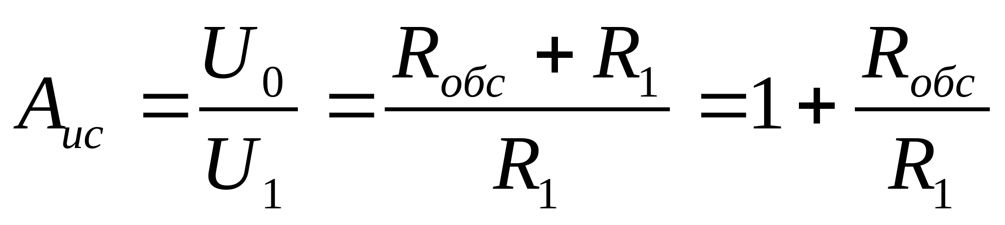 Для расчета коэффициента усиления неинвертирующего усилителя примем, что токи через резисторы R1, Rf равны (считая Ii приблизительно равными нулю), тогда