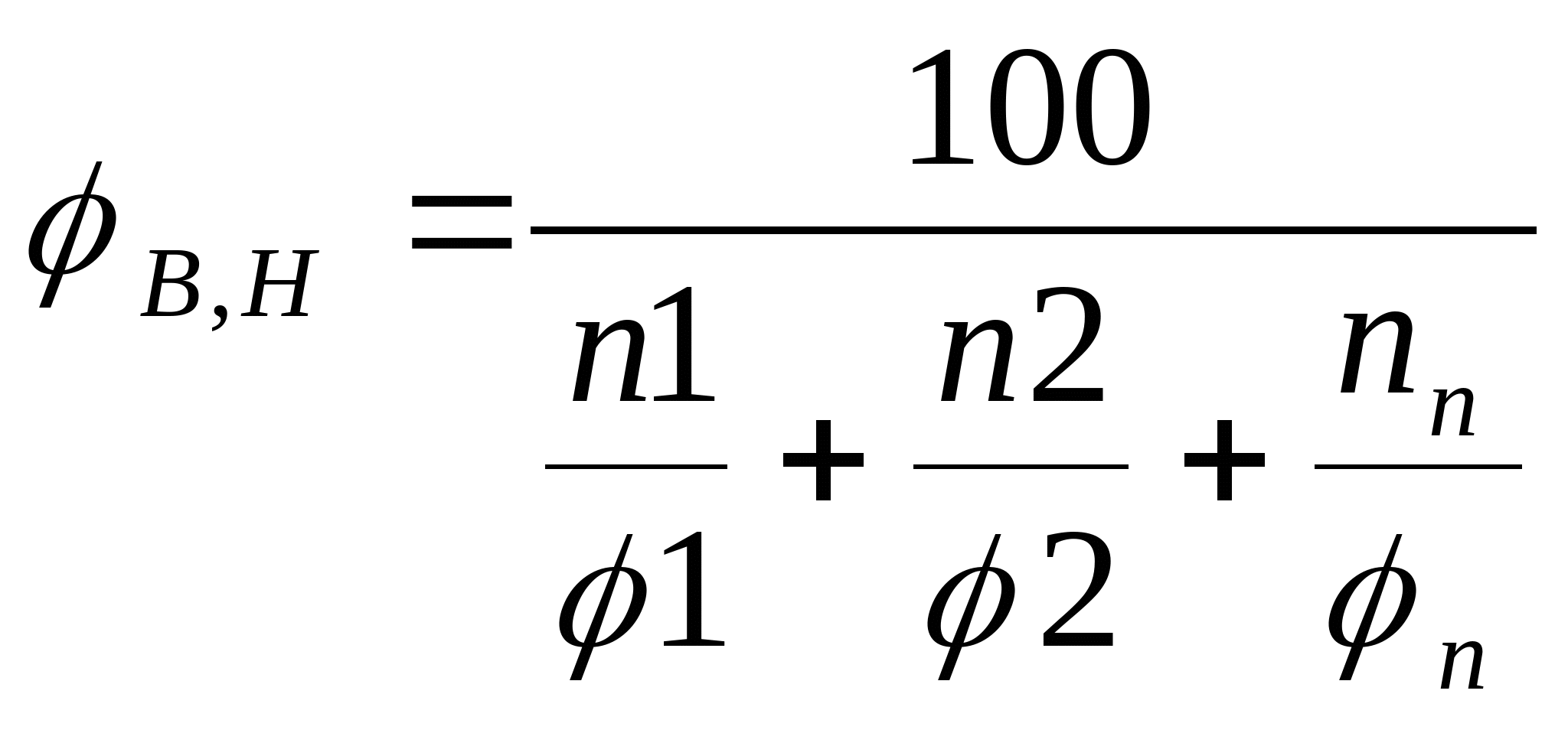 φ п = 100 / ( а м + в н ) а м , в м – цифровые константы зависят от предела Н или В