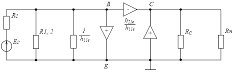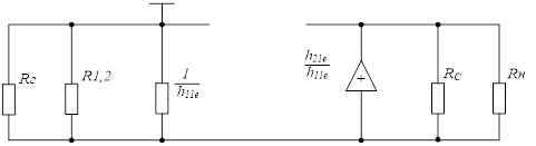 Рисунок 4 – Эквивалентная схема усилительного каскада на низкой частоте.