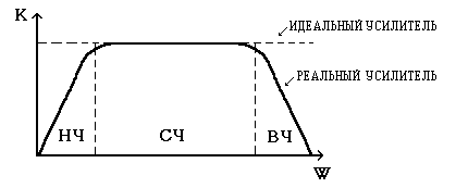 Резисторные усилительные касакады широко применяются в различных областях радиотехники. Идеальный усилитель имеет равномерную АЧХ во всей полосе частот, реальный усилитель всегда имеет искажения АЧХ , прежде всего - снижение усиления на низких и высоких частотах, как показано на рис. 3.1.