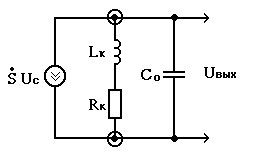 Принцип работы этой схемы основан на увеличении в области ВЧ сопротивления коллекторной цепи (Rк + jwLк). Увеличение этого сопротивления с ростом w позволяет повысить усиление каскада на ВЧ. Необходимым условием эффективности работы этой схемы является высокоомность внешнего сопротивления нагрузки Rн >Rк. В противном случае малое сопротивление Rн будет шунтировать коллекторную цепь, при этом усиление каскада будет определяться величиной Rн и мало зависеть от Rк и Lк. Эквивалентная схема касакада с ВЧ- корркцией при 1/Yi > Rн > Rк представлена на рис.3.9, откуда следует, что на ВЧ АЧХ корректированного усилителя близка к частотной характеристике параллельного колебательного контура.