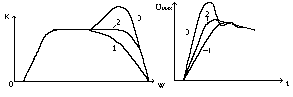 АЧХ и ПХ усилителя при оптимальных и неоптимальных параметрах НЧ-коррекции (1 - без коррекции , 2 - оптимальная коррекция, 3 - перекоррекция ) приведены на рис.3.12.