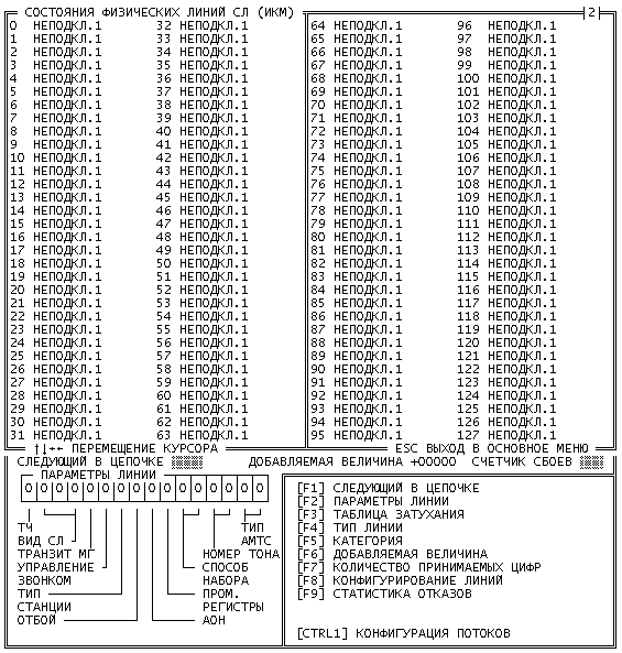 1. В окне ЦК нажимаем «ALT+2». Появляется окно состояния физических линий (рис. 10).