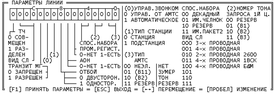 3. В зеленом окне просматриваем характеристики линий. Ставим способ набора – декадный код – для декадных АТС (ПРИМЕЧАНИЕ: многочастотный – для координатных АТС).