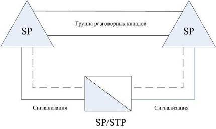 При «квазисвязанном» режиме информация сигнализации может передаваться через транзитный пункт, а не напрямую между взаимодействующими объектами сети (рис. 18).