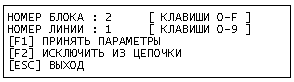3.2. В окне пишем № блока – 2; № линии – 1. Нажимаем «F1» – принять параметры.