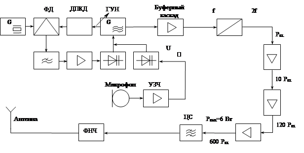 Рис 2.3 Структурная схема ЧМ передатчика с синтезатором частоты