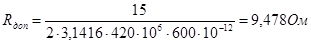 ); f – частота радиочастотного тока, МГц; DT – разность температур провода и окружающей среды (возьмём DT =30 °С (°К)), К. Подставив в (5.2.2) численные значения, с учётом рассчитанного по (4.1.3) амплитудного значения радиочастотного тока нагрузки имеем: