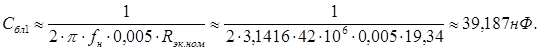 Сбл = 73,56 пФ; Сбл1 = 39,187 нФ; Сбл2 = 195,95 пФ; С1 = 39,74 пФ; С3 = 76,35 пФ; С5 = 65,34 пФ;
