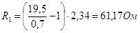 R1 = 61,17 Ом; R2 =2,34 Ом; Rдоп = 9,478 Ом