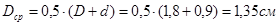 В этой формуле Dср – средний диаметр ферритового сердечника, а S - площадь сечения кольца ферритового сердечника, которые подставляются в (4.2.2) в сантиметрах и рассчитываются по формулам: