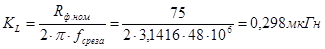Уточним расчётное значение индуктивности (см. 5.1.5) катушек с учётом влияния экрана катушки: экран уменьшает индуктивность катушки в соответствии с законом Лоренца. Если диаметр экрана, по крайней мере, вдвое больше диаметра катушки (допустим что в нашем случае это так ), то его влияние не велико и следует принять расчётное значение индуктивности катушек Lрасч » (1,1…1,2 ) L, т.е. получим: