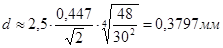 В связи с трудностями учёта как степени нагревания катушки (активное сопротивление провода катушки сложным образом зависит от частоты тока f, материала и диаметра провода, диаметра катушки и т.д.), так и разнообразных условий её охлаждения воспользуемся эмпирической формулой для определения диаметра цилиндрических однослойных, с естественным (конвекционным) охлаждением катушек.