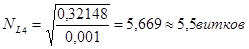 Теперь присутствуют все данные, необходимые для определения количества витков при намотке линии на ферритовый сердечник, которое определяется по формуле (4.2.2):