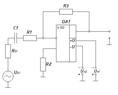 | 2. Расчет инвертирующего усилителя постоянного тока |