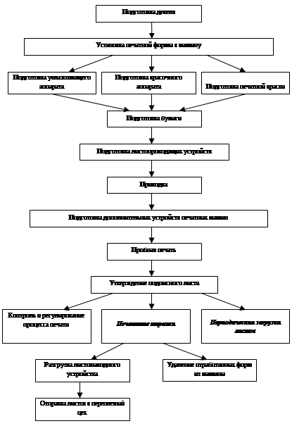 При использовании машин высокой печати, время, необходимое, для подготовки машины к печатанию и большие затраты на изготовление печатных форм, существенно больше, чем при печати на офсетных машинах. Поэтому и общее время, для запуска изданий способом высокой печати, больше, чем при использовании офсетной технологии. Для печати полутоновых изображений и репродукции картин глубокая печать не имеет себе равных. Глубоким способом можно выполнять и бесконечную печать (обои), но недостатком, как и в высокой печати, является высокая стоимость печатных форм. Плоская офсетная печать имеет самую низкую стоимость печатных форм при постоянно высоком качестве печати, широкий спектр запечатываемых материалов и на данном действующем предприятии установлено оборудование для листовой офсетной печати. Учитывая ряд положительных факторов мы выбираем способ офсетной печати.