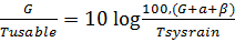 - Затухання в умовах дощу для заданої ймовірності здобуття сигналу (номінальне значення 99,5% для середнього року).