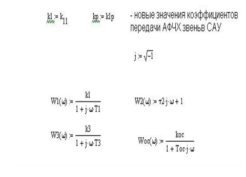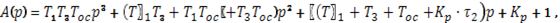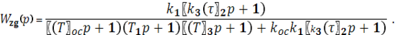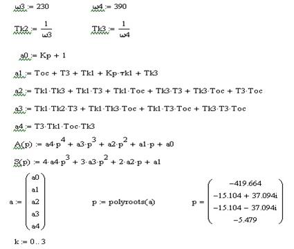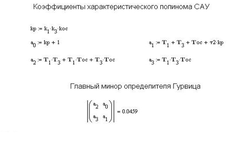 где Kp = k 1 · k 3 · koc - коэффициент передачи разомкнутой цепи САУ, а коэффициенты характеристического полинома a 0 , a 1, a 2, a 3 рассчитываются по выражениям: